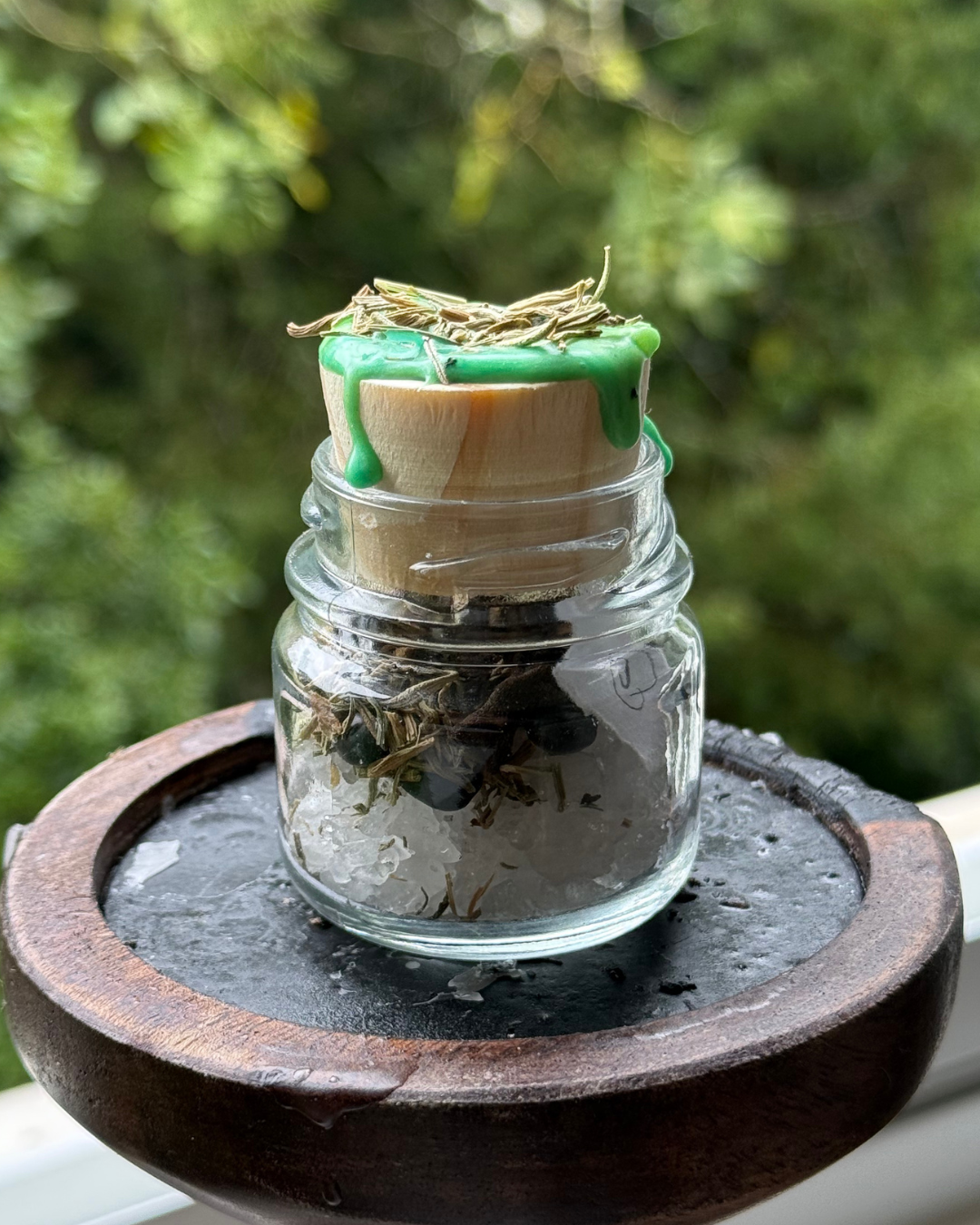 Ervas, óleos essenciais, cristais, sigilo, fumaça do incenso e energia das cores.